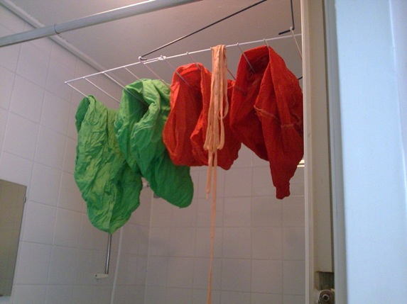The theme of the HAR2009 Lounge was "retro gaming". One person of the designteam came up with the idea of putting together pacman ghoststools with Ikea square shaped seats. I've bought these seats, painted the covers in pacman colours, attached the eyes, sewn the black line on them and put them together.